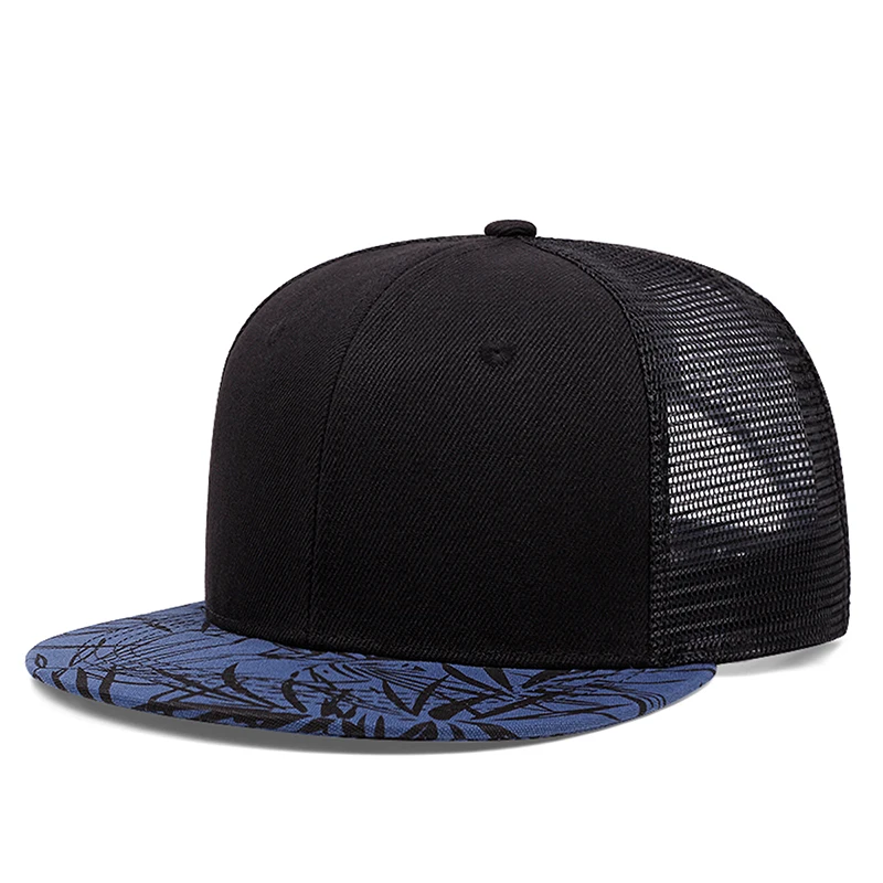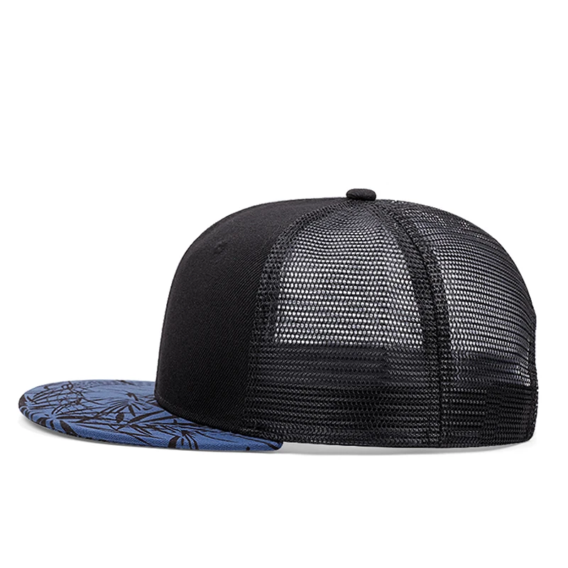 Bamboo Leaf Print Trucker Cap – Breathable Mesh Snapback Hat